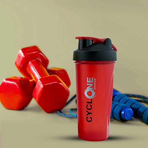 Trueware Cyclone Gym Shaker - Protein Shake Mixer with Leak-Proof Design | Food grade Plastic | BPA-Free 700ml Capacity | Ideal Workout Blender for Fitness Lovers | Sports Bottle with Easy-Grip Lid for Smoothies and Protein Shakes"| Color Red | Setof 2