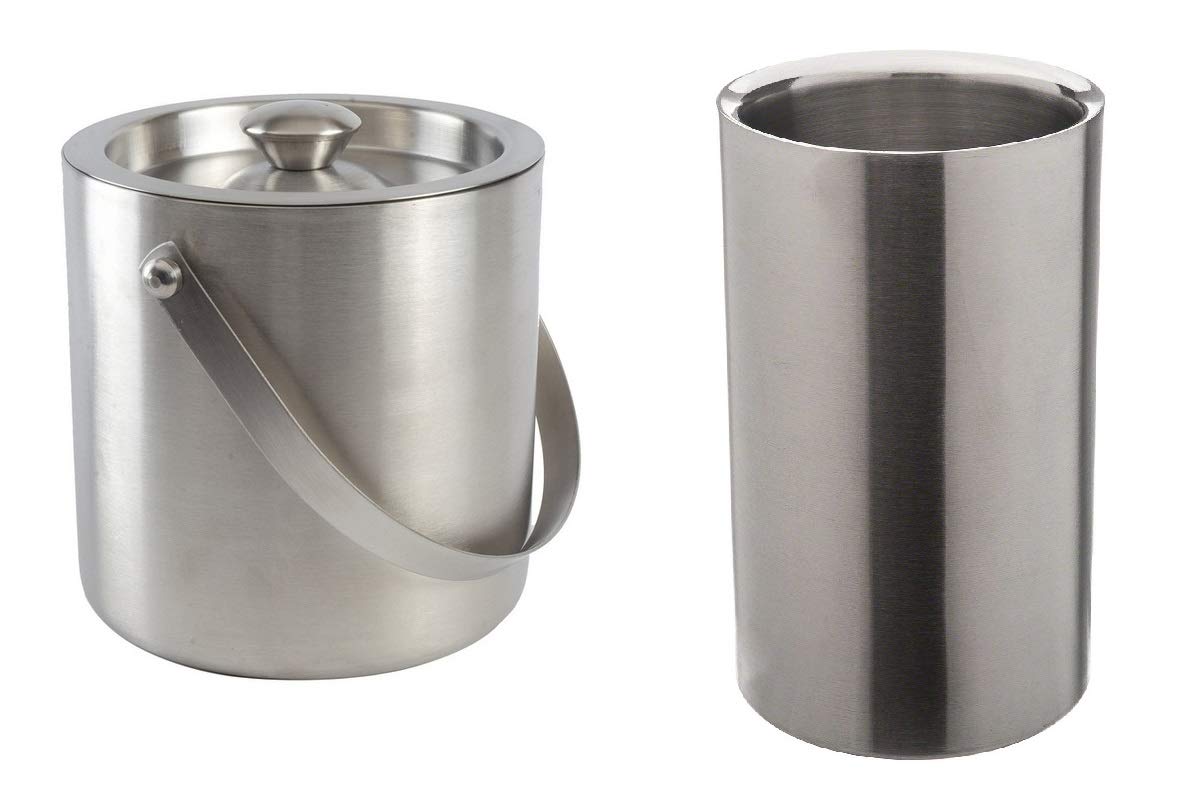 Dynore Stainless Steel Double Wall Ice Bucket 1500 ml with Wine Cooler 800 ml- Set of 2