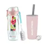 AGARO Plastic Infusion Bottle 1000Ml Rose Gold Reusable Polar Ice-Gel Ball 1 Litre Bpa Free Water Bottle Leak Proof Ss Shaker Ball Carry Cover Sleeve Recipe Book Rose Gold