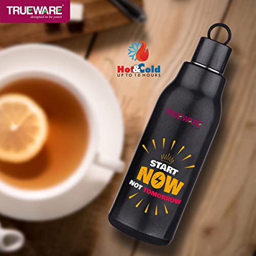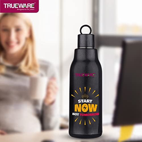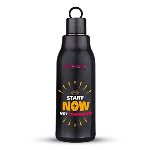 Trueware Atom water Bottle is made up with insulated 100% Food Grade Stainless Steel inside with a smooth easy to clean finish. It is a versatile and handy product that makes storing beverages hot / Cold at home School College office easily. It is ergonomically designed light weight and firm grip with attractive design. It has ring strap to carry easily. It is easy to store in bag. The taste and nutritive value of the drinks remain intact. It has flip- top lid which is convenient to use with single hand. You can store Hot and cold beverage upto many hours. It is tough and sturdy for daily usage.