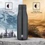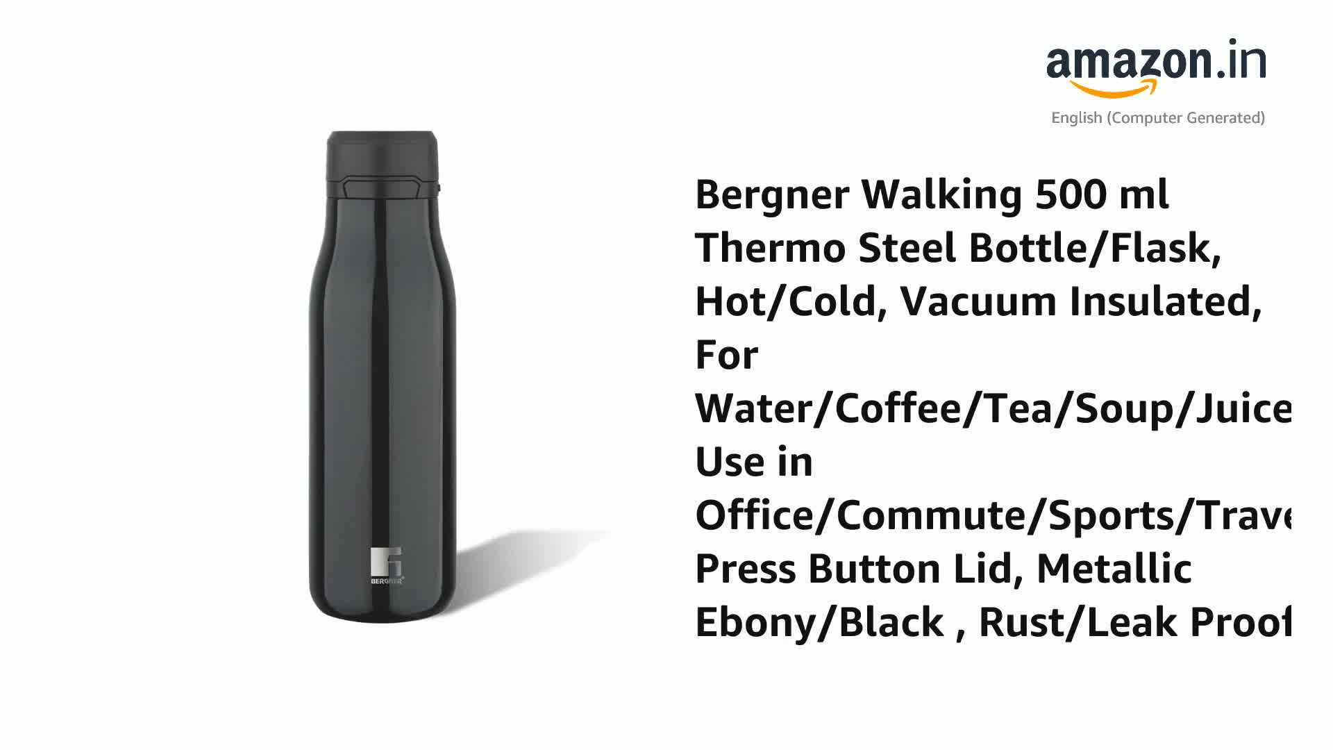 Bergner Walking 500 ml Thermo Steel Bottle/Flask, Hot/Cold, Vacuum Insulated, For Water/Coffee/Tea/Soup/Juice, Use in Office/Commute/Sports/Travel, Press Button Lid, Metallic Ebony/Black , Rust/Leak Proof