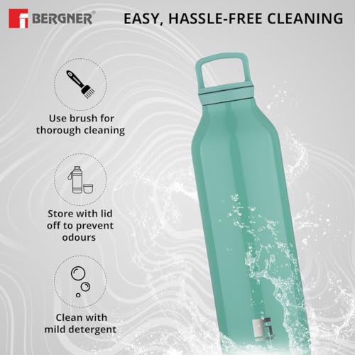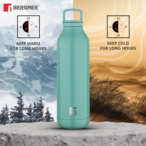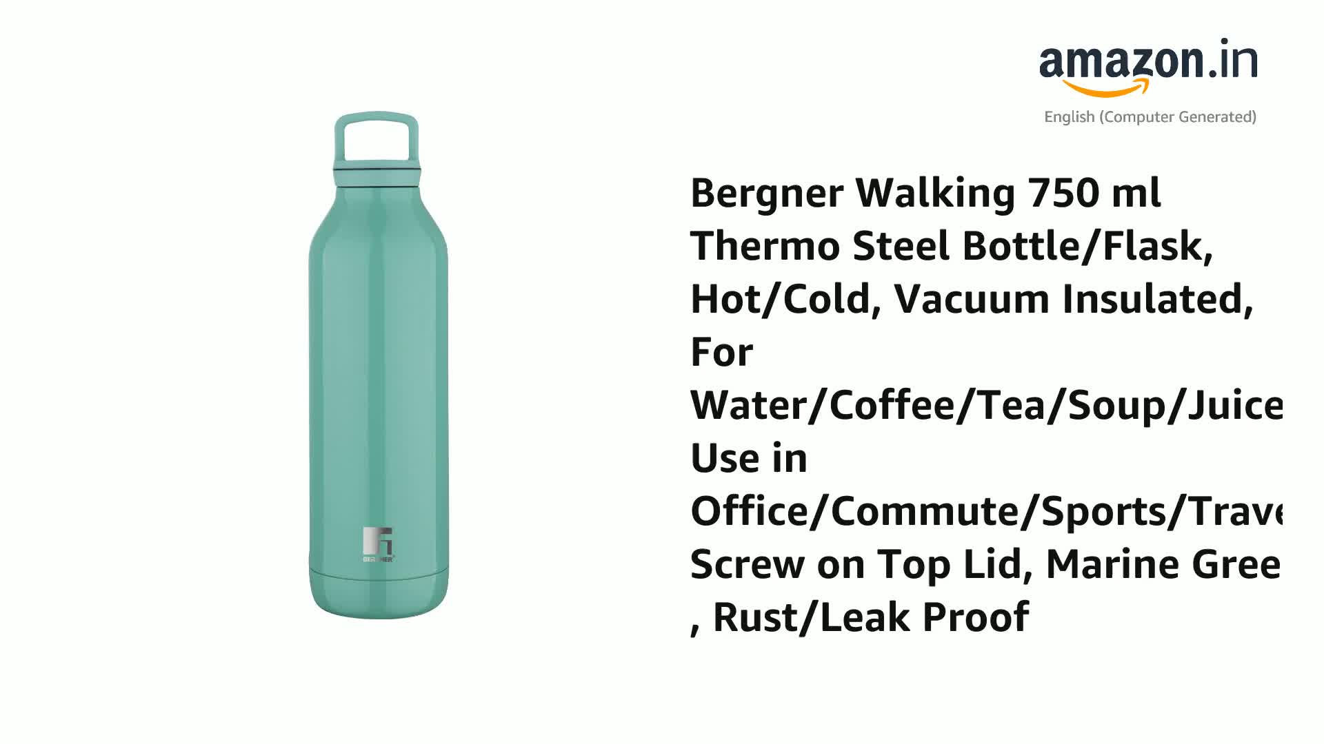 HomeKitchenContainersBottlesBergner Walking 750 ml Thermo Steel Bottle/Flask, Hot/Cold, Vacuum Insulated, For Water/Coffee/Tea/Soup/Juice, Use in Office/Commute/Sports/Travel, Screw on Top Lid, Marine Green , Rust/Leak Proof