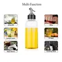 Snug Fit Spout No more spills or splashes. Unlike bottle with cheap quality spout glass oil bottle has tight seal spout does not come off when bottle is tilted for pouring. Controlled Pouring A healthy choice as it gives you complete control over how much oil vinegar dressing you want on your salad. Olive oil dispenser bottle pours without any mess and has an extra spout for long life. Efficent Grip Cooking oil container is anti-slip and has adequate size that let fingers put over it easily for a comfortable grasp of hands. 12-inches bottle is nice compact to be kept at table or carry for picnic. Airtight And Non-drip Bottle Stoppers The oil and vinegar cruet features airtight bottle stoppers to keep content fresh and pouring spouts with lever-release snap lids for controlled pouring. Food Grade Quality Made of BPA free lead free glass which makes it absolutely safe for health. It is Odorless so no worries about imparting any odor to oil or spices inside. Durable This olive oil bottle has rust proof spout and solid one-piece glass making that is shatter proof does not crack upon routine use and will serve you for long.