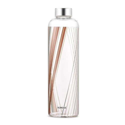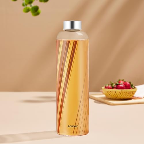 HomeKitchenContainersBottlesBorosil 1 L Artisan Prism Water Bottle with Steel Lid | Borosilicate Glass Narrow Mouth Bottle for Fridge | Extreme Temperature Resistant For Hot & Cold Water, Milk, Lassi, Juice | Transparent