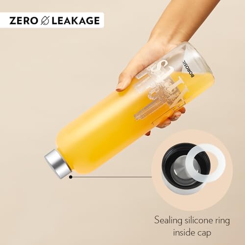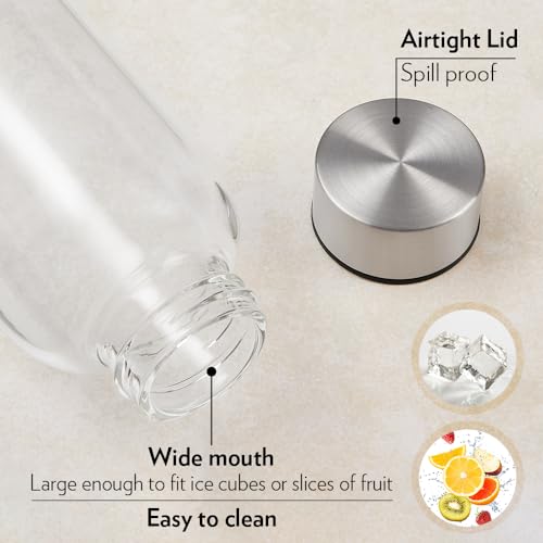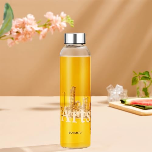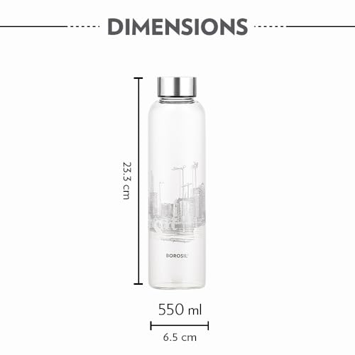 HomeKitchenContainersBottlesBorosil 550ml Artisan Roma Water Bottle with Steel Lid | Borosilicate Glass Narrow Mouth Bottle for Fridge | Extreme Temperature Resistant For Hot & Cold Water, Milk, Lassi, Juice | Transparent