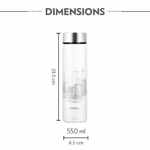HomeKitchenContainersBottlesBorosil 550ml Artisan Roma Water Bottle with Steel Lid | Borosilicate Glass Wide Mouth Bottle for Fridge | Extreme Temperature Resistant For Hot & Cold Water, Milk, Lassi, Juice | Transparent