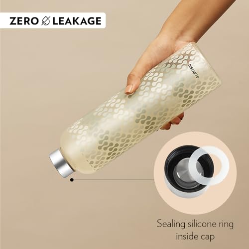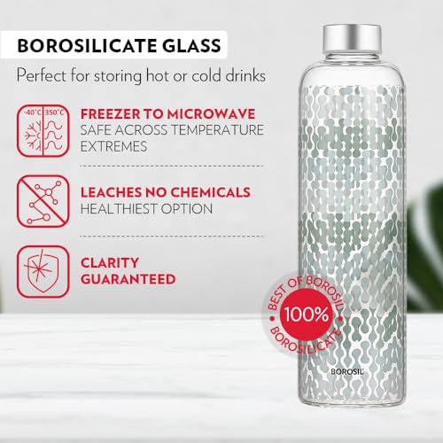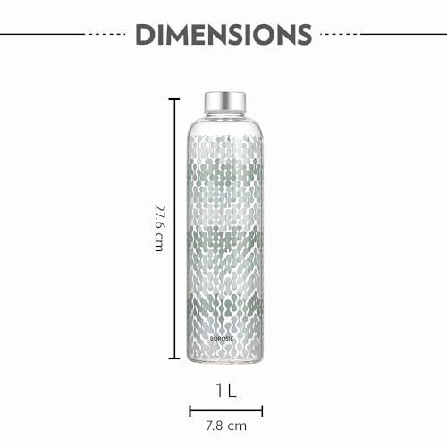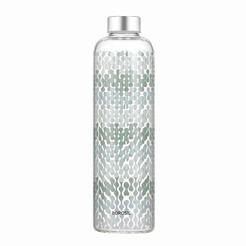 HomeKitchenContainersBottlesBorosil 1 L Artisan Vista Water Bottle with Steel Lid | Borosilicate Glass Narrow Mouth Bottle for Fridge | Extreme Temperature Resistant For Hot & Cold Water, Milk, Lassi, Juice | Transparent