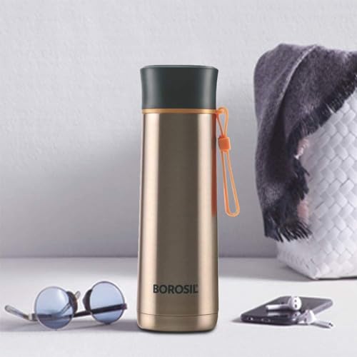 Borosil Hydra Sprint 400 ml Stainless Steel Water Bottle | Double Wall Vacuum Insulated BPA Free Flask | 20 Hrs Hot & 24 Hours Cold | Bottle for Office, Gym, School, College | 1 Year Warranty, Gold