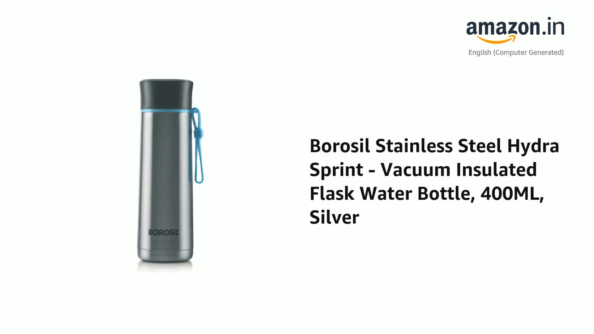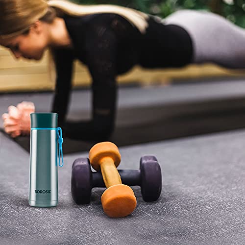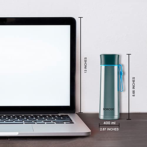 Borosil Hydra Sprint 400 ml Stainless Steel Water Bottle | Double Wall Vacuum Insulated BPA Free Flask | 20 Hrs Hot & 24 Hours Cold | Bottle for Office, Gym, School, College | 1 Year Warranty, Silver