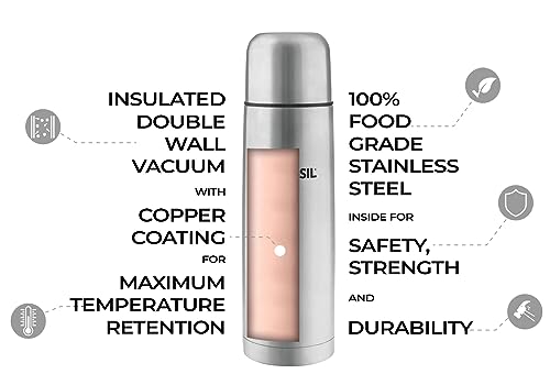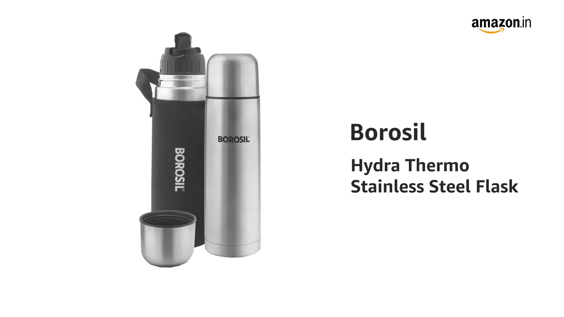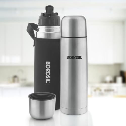 HomeKitchenContainersBottlesBorosil Hydra Thermo 1000 ml Stainless Steel Water Bottle | Double Wall Vacuum Insulated Flask | 24 Hours Hot and Cold | Bottle for Office, Gym, School, Black