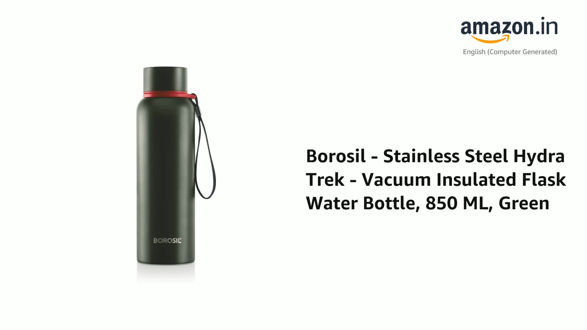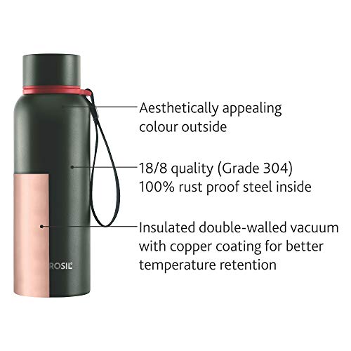 HomeKitchenContainersBottlesBorosil Hydra Trek 850 ml Stainless Steel Water Bottle | Double Wall Vacuum Insulated Flask, Green | 20 Hours Hot & 24 Hours Cold | Ideal for Personal & Corporate Gifting | 1 Year Warranty