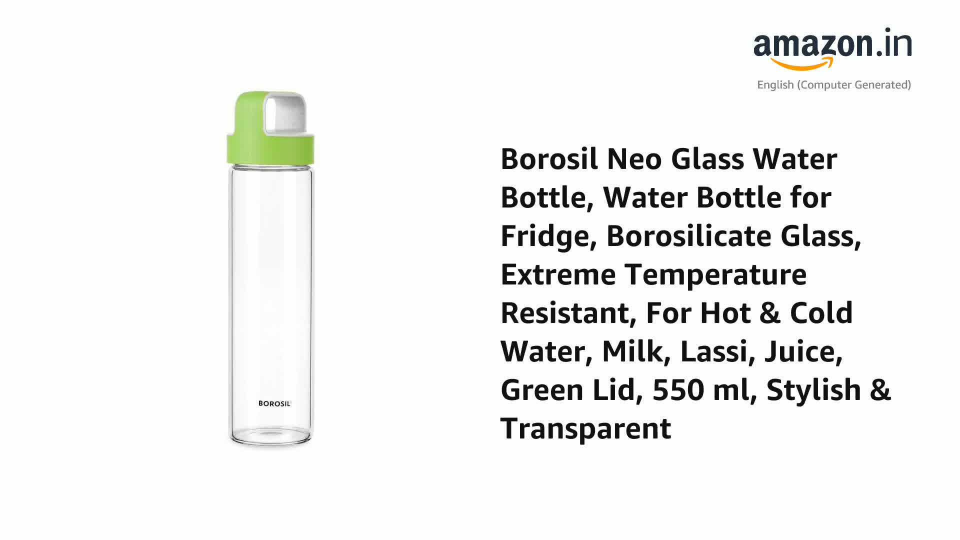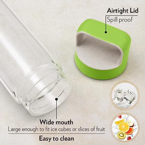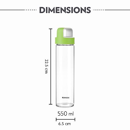 Borosil 550ml Neo Water Bottle with Green Husk Lid | Borosilicate Glass Wide Mouth Bottle for Fridge | Extreme Temperature Resistant For Hot & Cold Water, Milk, Lassi, Juice | Transparent
