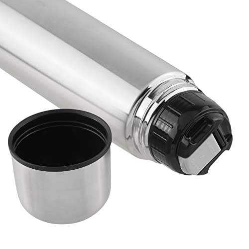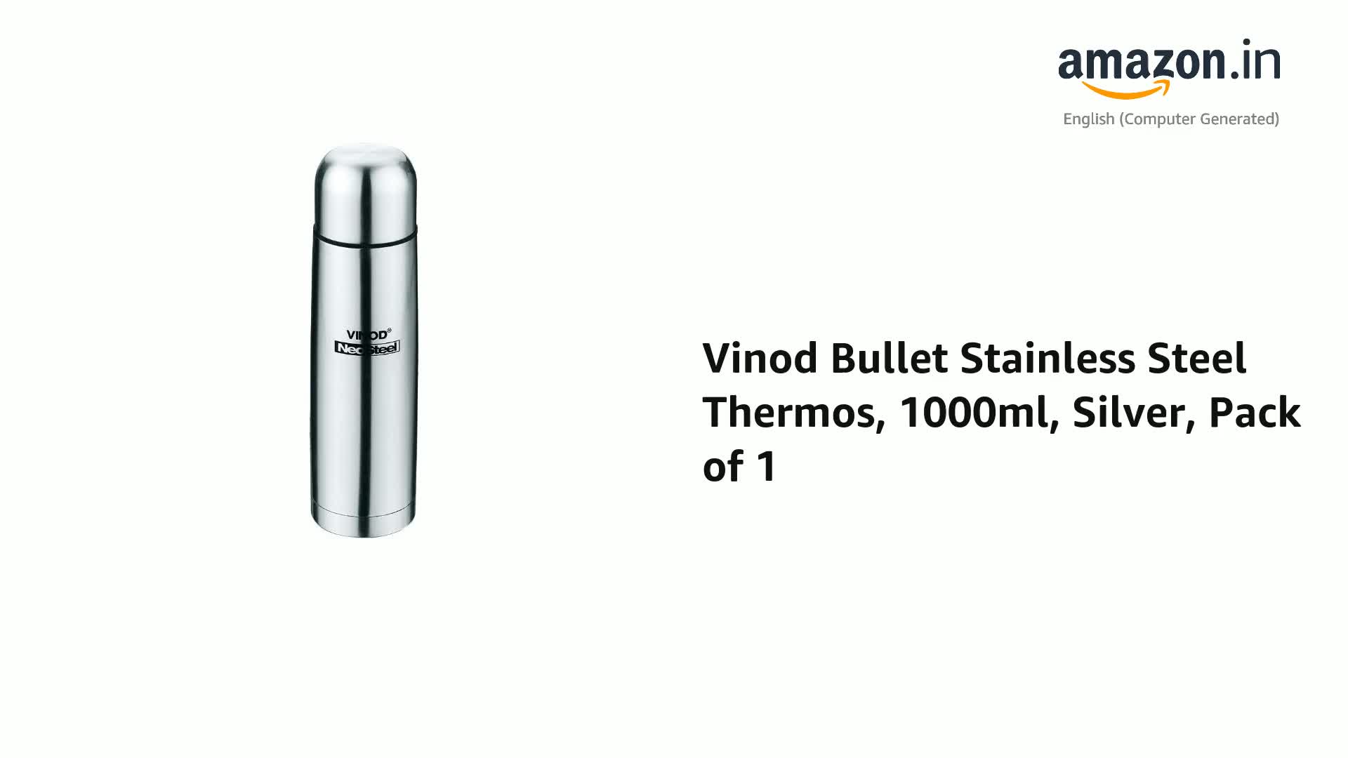 Vinod Bullet Stainless Steel Bottle 1000 ml| Stainless Steel Hot and Cold Flask| Double Wall Insulated Stainless Steel Flip Lid Flask with Jacket- Silver