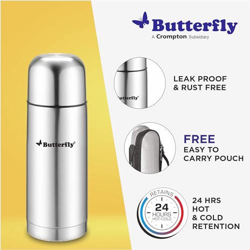 Butterfly Dazz Vacuum Flask is our Premium Stainless Steel Vacuum Flask â the ideal companion for those who appreciate the luxury of enjoying their favorite beverages at the perfect temperature wherever they go. Crafted with precision and designed for both style and functionality this vacuum flask is a must-have for your daily adventures. Whether you're savoring a hot morning coffee a refreshing iced tea or a revitalizing soup on a chilly day this flask ensures your drink remains at the perfect temperature. Enjoy quality style and practicality with every sip
