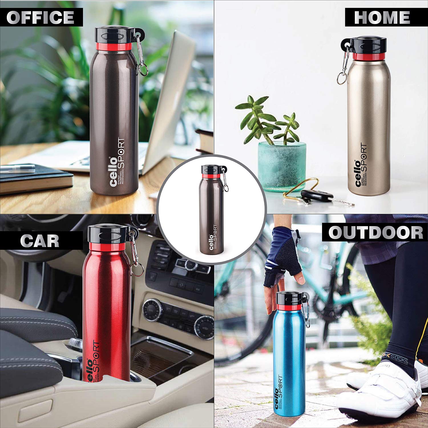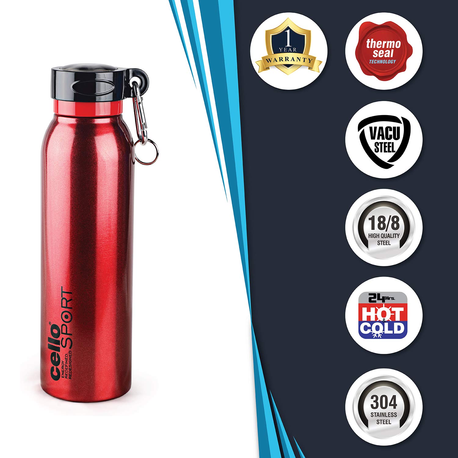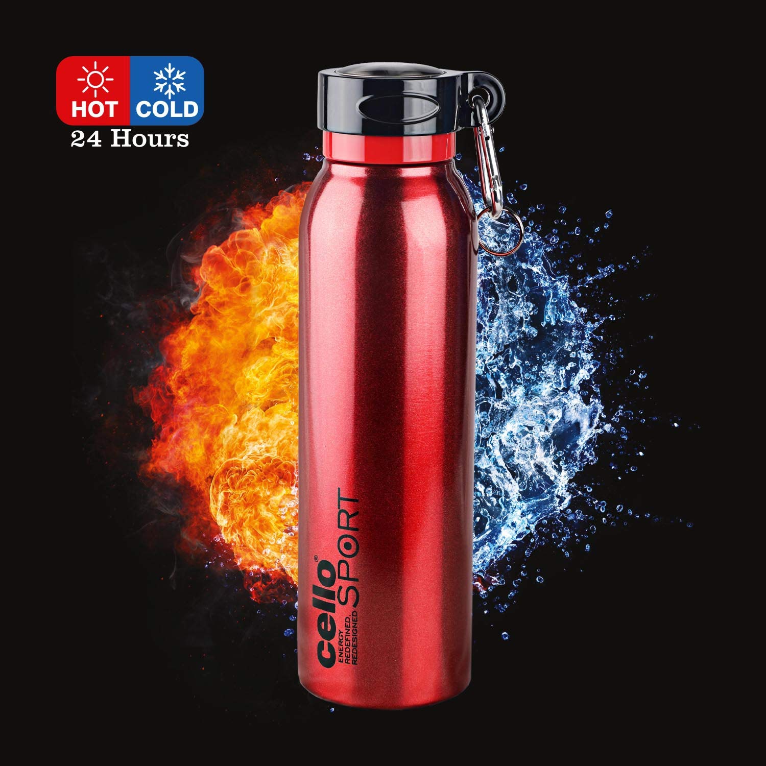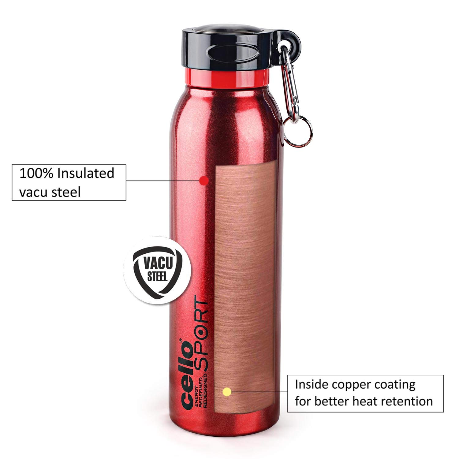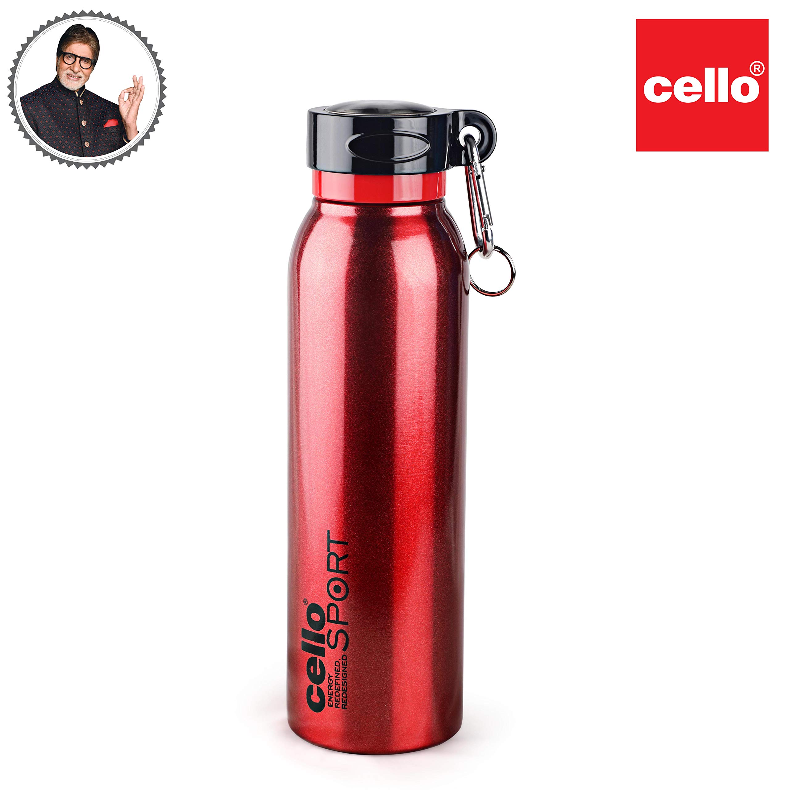 HomeKitchenContainersBottlesCello Beatle Stainless Steel Vacuum Insulated Bottle Red 550ml |Hot & Cold Water Bottle with Screw top Lid | Double Walled Water Bottle for Sports Gym Outdoor Travel