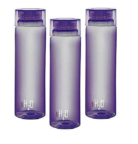 Cello Deluxe H2O Unbreakable Plastic Water Bottle Set, Set of 3, 1 Litre Purple