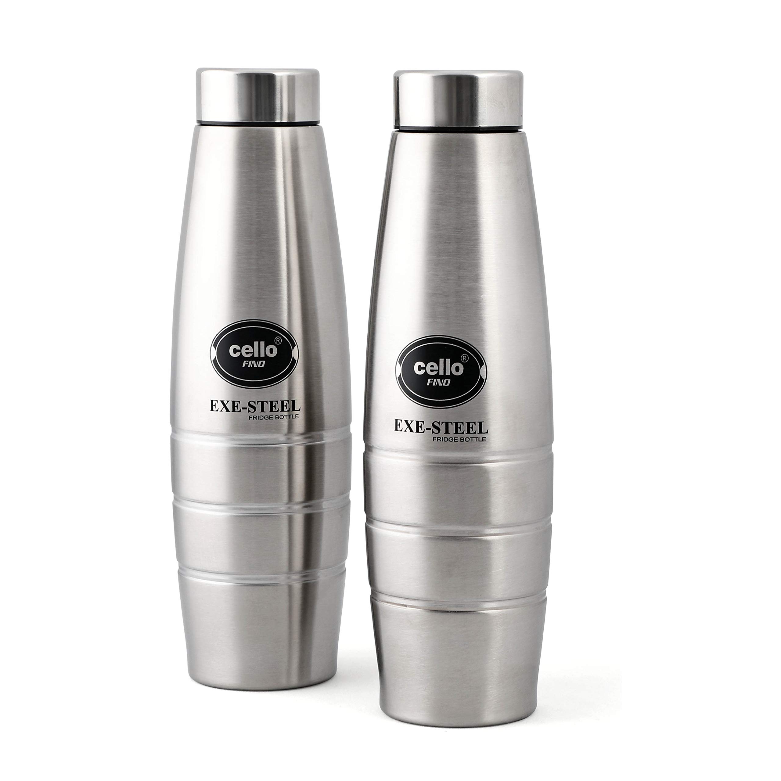 Cello Fino Stainless Steel Bottle Set 1 Liter Set of 2 Silver