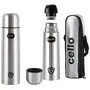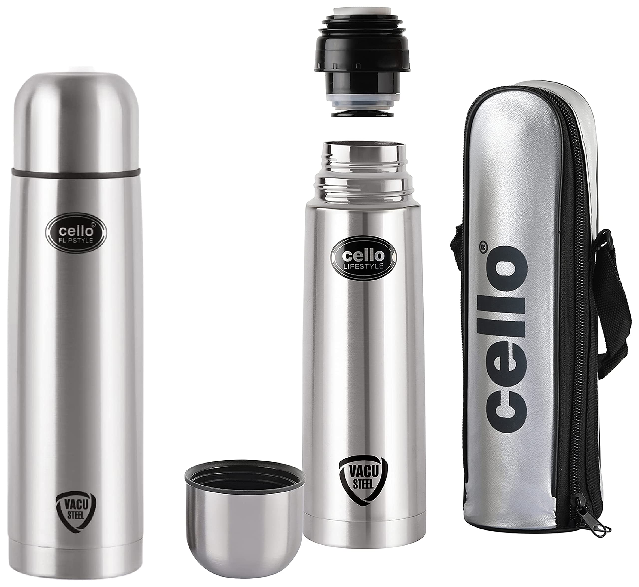 Cello Flip Style Stainless Steel, 1 Litre, Silver & Lifestyle Stainless Steel Flask with Thermal Jacket, 500ml Combo