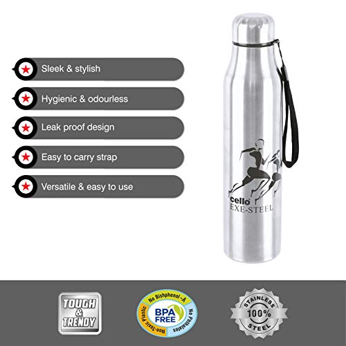 CELLO Goldie Stainless Steel Water Bottle, 1000 ml, 1 Unit, Silver