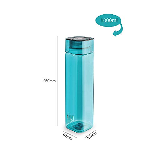 CELLO H2O Squaremate Plastic Water Bottle | Lid is sealed by a silicone ring | Leak proof & break-proof |Best Usage for Office/School/College/Gym/Picnic/Home/Fridge | 1 Liter | Assorted, Set of 2