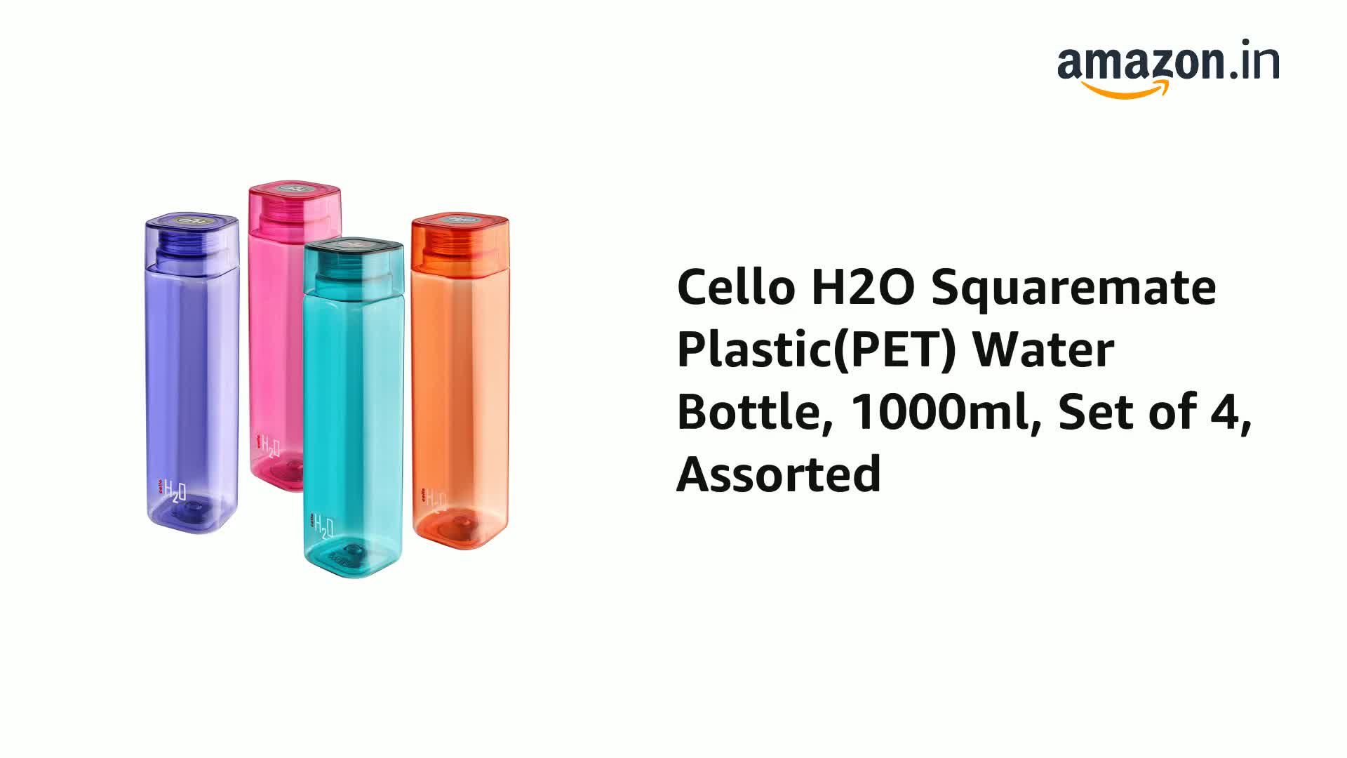 CELLO H2O Squaremate Plastic(PET) Water Bottle, 1000ml, Set of 4, Assorted