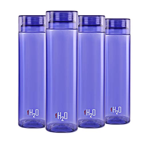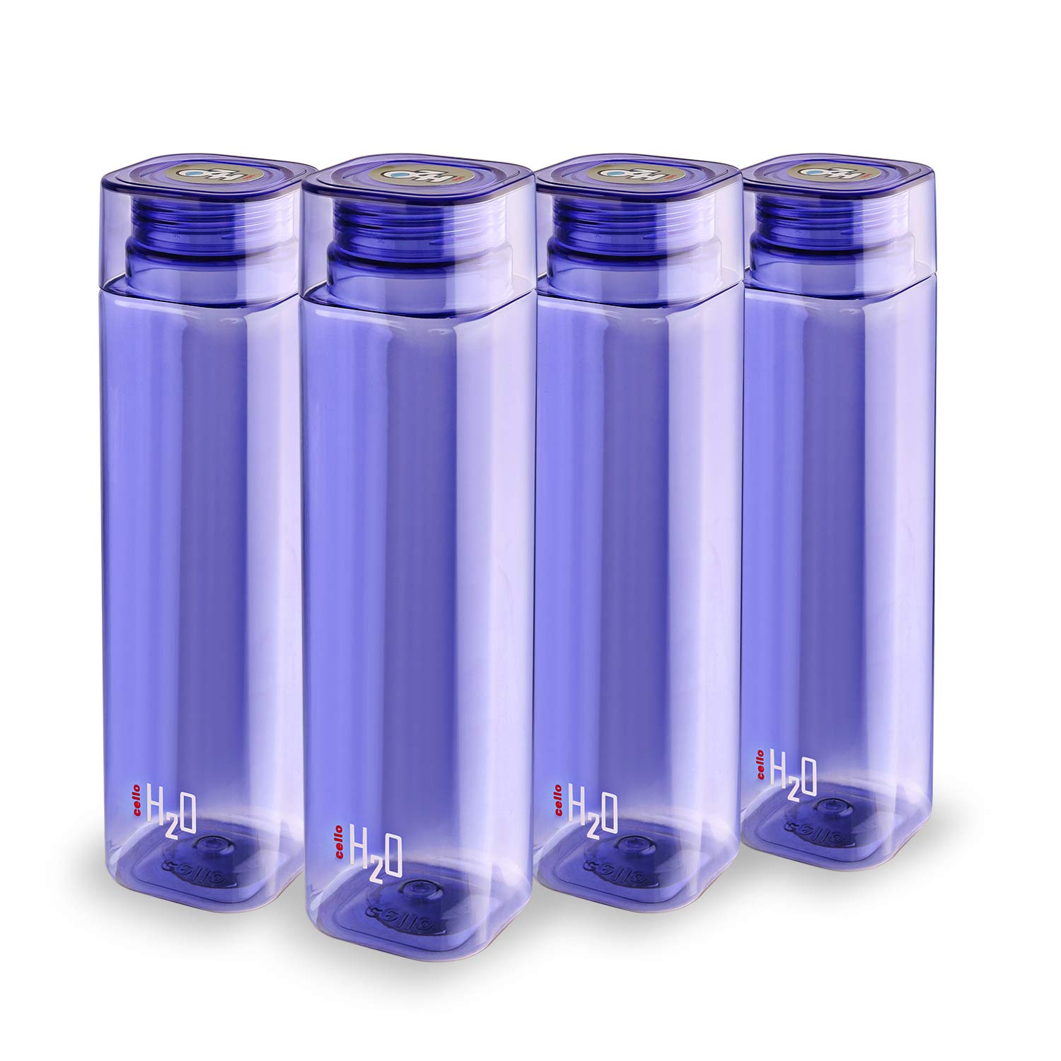 CELLO H2O Squaremate Plastic Water Bottle | Lid is sealed by a silicone ring | Leak proof & break-proof |Best Usage for Office/School/College/Gym/Picnic/Home/Fridge | 1 Liter | Purple, Set of 4