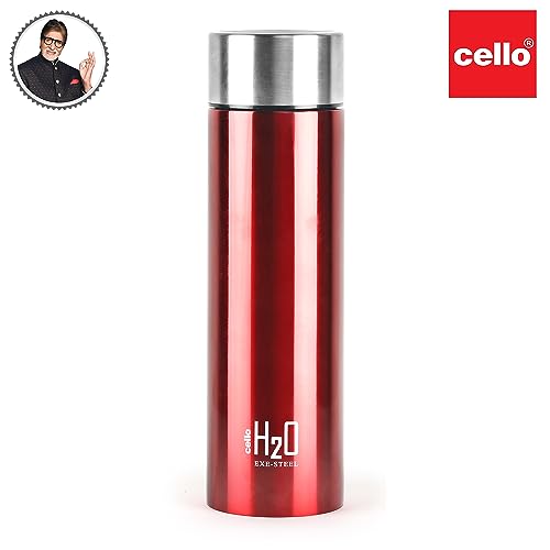 CELLO H2O Stainless Steel Water Bottle | Leak proof & break-proof | Lid is sealed by a silicone ring | Best Usage for Office/School/College/Gym/Picnic/Home/Fridge |1 Litre | Red, 1 Unit