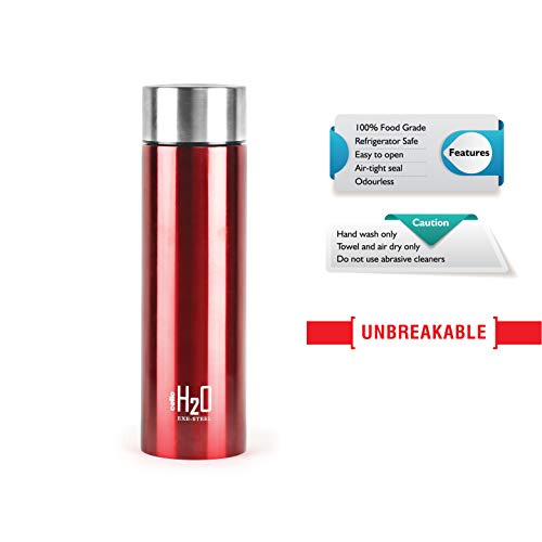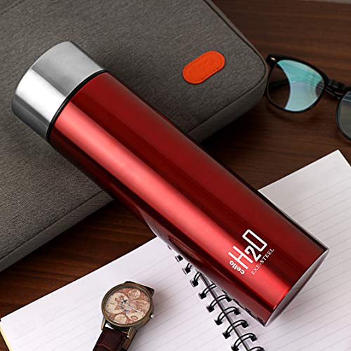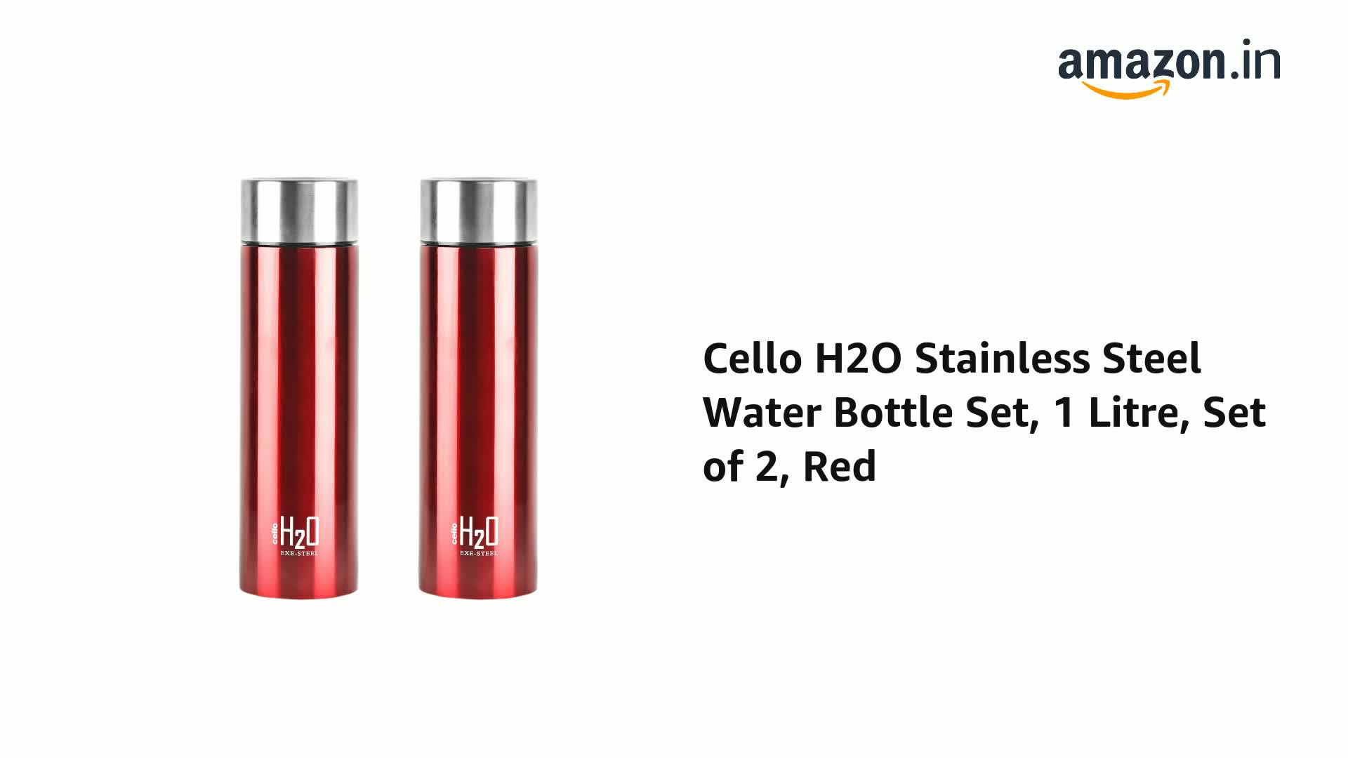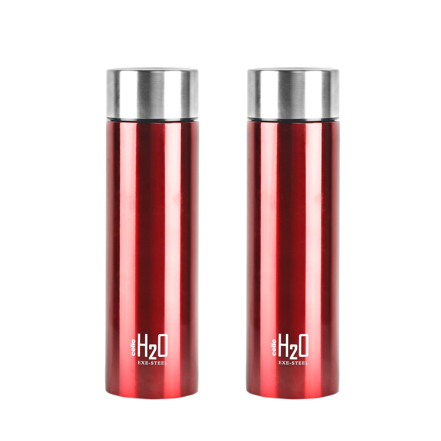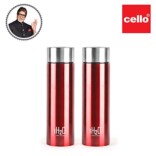 CELLO H2O Stainless Steel Water Bottle | Leak proof & break-proof | Lid is sealed by a silicone ring | Best Usage for Office/School/College/Gym/Picnic/Home/Fridge |1 Litre | Red, Set of 2