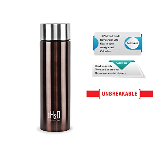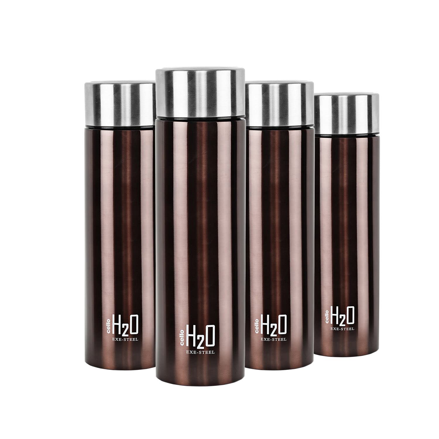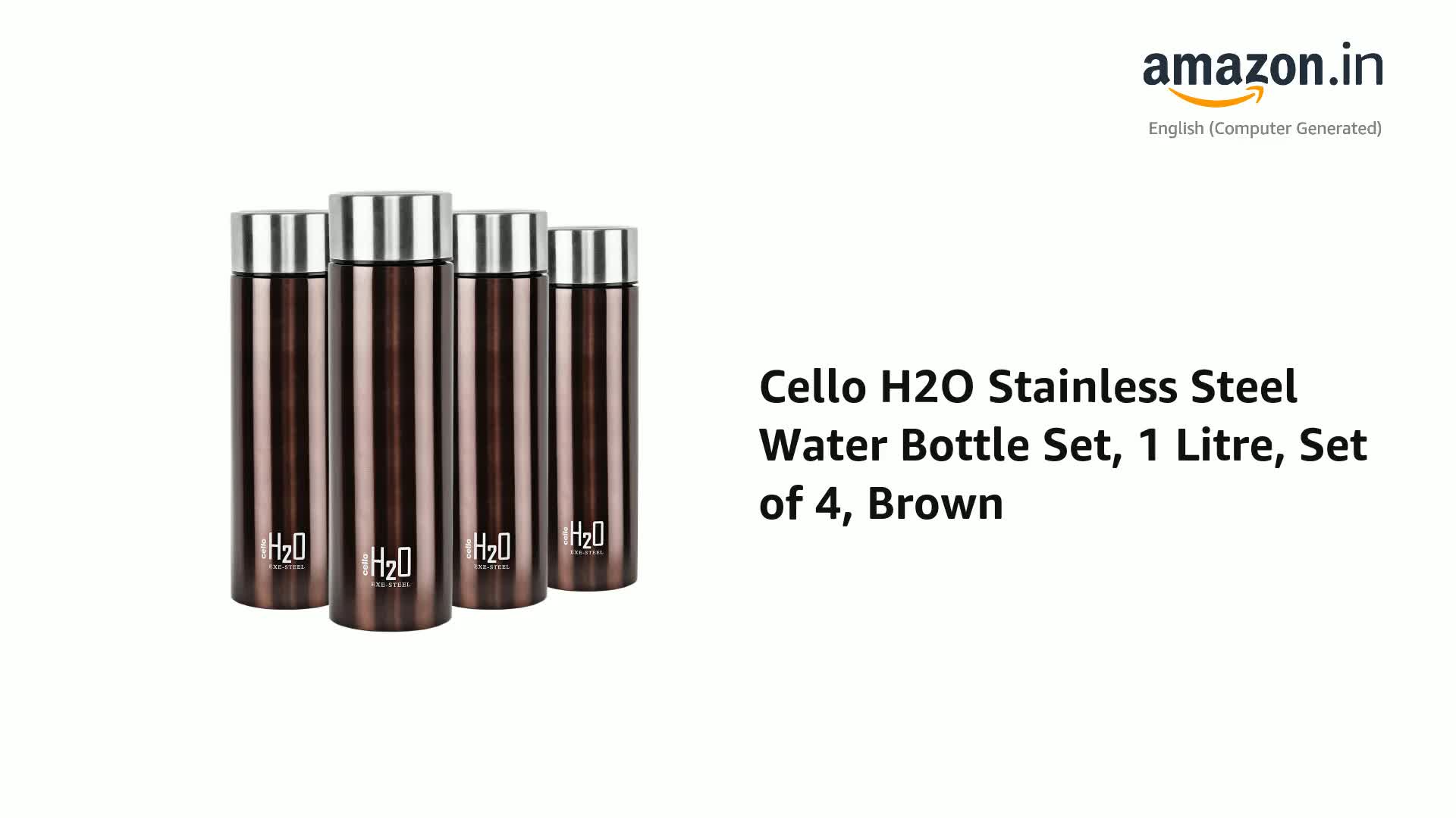 CELLO H2O Stainless Steel Water Bottle | Leak proof & break-proof | Lid is sealed by a silicone ring | Best Usage for Office/School/College/Gym/Picnic/Home/Fridge |1 Litre | Brown, Set of 4