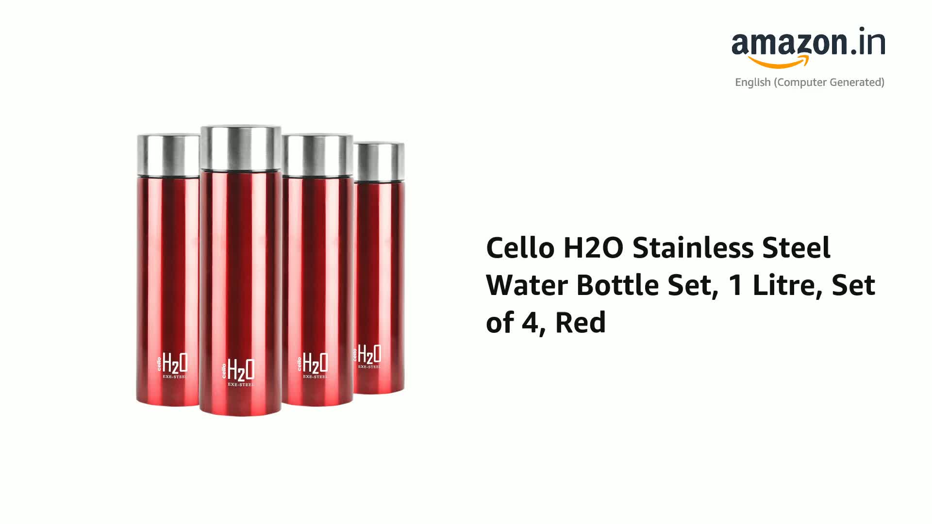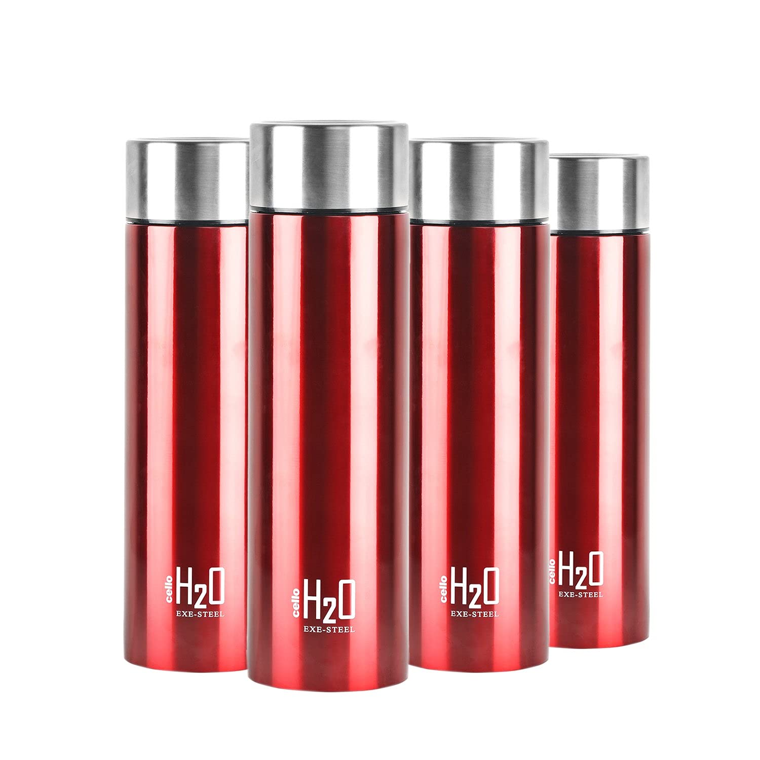 CELLO H2O Stainless Steel Water Bottle | Leak proof & break-proof | Lid is sealed by a silicone ring | Best Usage for Office/School/College/Gym/Picnic/Home/Fridge |1 Litre | Red, Set of 4