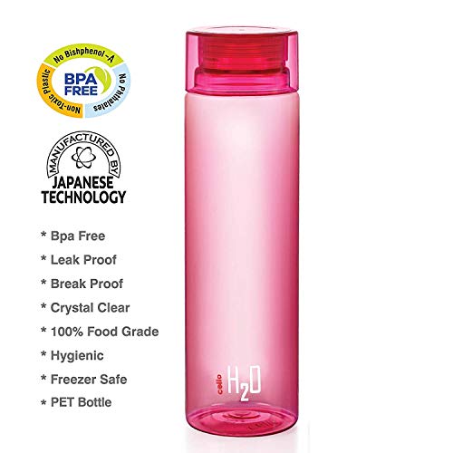 Cello H2O Round Unbreakable Plastic Water Bottle | Lid is sealed by a silicone ring | Leak proof & break-proof | Best Usage for Office / School / College | 1 Liter | Assorted , Set of 6
