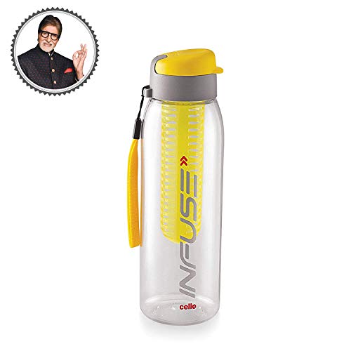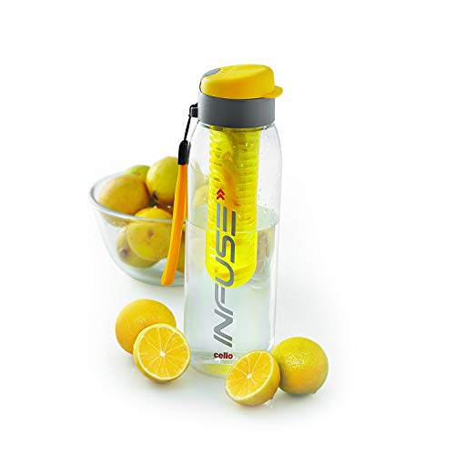 Cello Infuse Plastic Water Bottle 800 ml BlackStylish and durable infuse bottle features convenient leak proof flip top cap allowing you to take a sip while on the move. Increase your nutrient intake by infusing fruits vegetable herbs to your water.Cello Infuse Plastic Water Bottle 800 ml YellowStylish and durable Infuse bottle features convenient leak proof flip top cap allowing you to take a sip while on the Move. increase your nutrient intake by infusing fruits vegetable herbs to your water.
