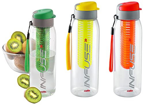 Cello Infuse Plastic Water Bottle Set, 800ml, Set of 2, Yellow/Orange & Infuse Plastic Water Bottle, 800 ml, Green Combo