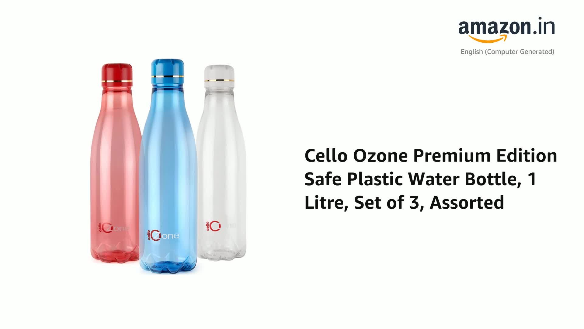 Cello Ozone Premium Edition Plastic Fridge Water Bottle, Set of 3, 1000ml, Multicolor | Airtight Lid | Leak Proof & BPA Free | Ideal for Office, Sports, School, Travelling, Gym, Yoga