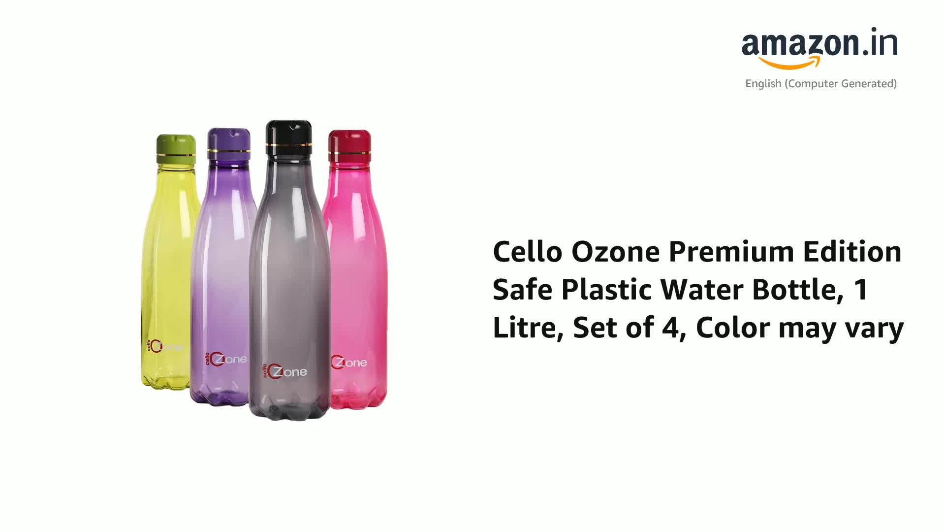 Cello Ozone Premium Edition Plastic Fridge Water Bottle, Set of 4, 1000ml, Multicolor | Airtight Lid | Leak Proof & BPA Free | Ideal for Office, Sports, School, Travelling, Gym, Yoga