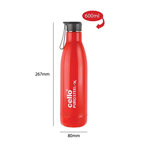CELLO Puro Steel-X Rover 600 | Water Bottle with Inner Steel and Outer Plastic | Leak Proof Insulated Water Bottle | Suitable for Home, School, Office, Outdoor | 480ml, Red