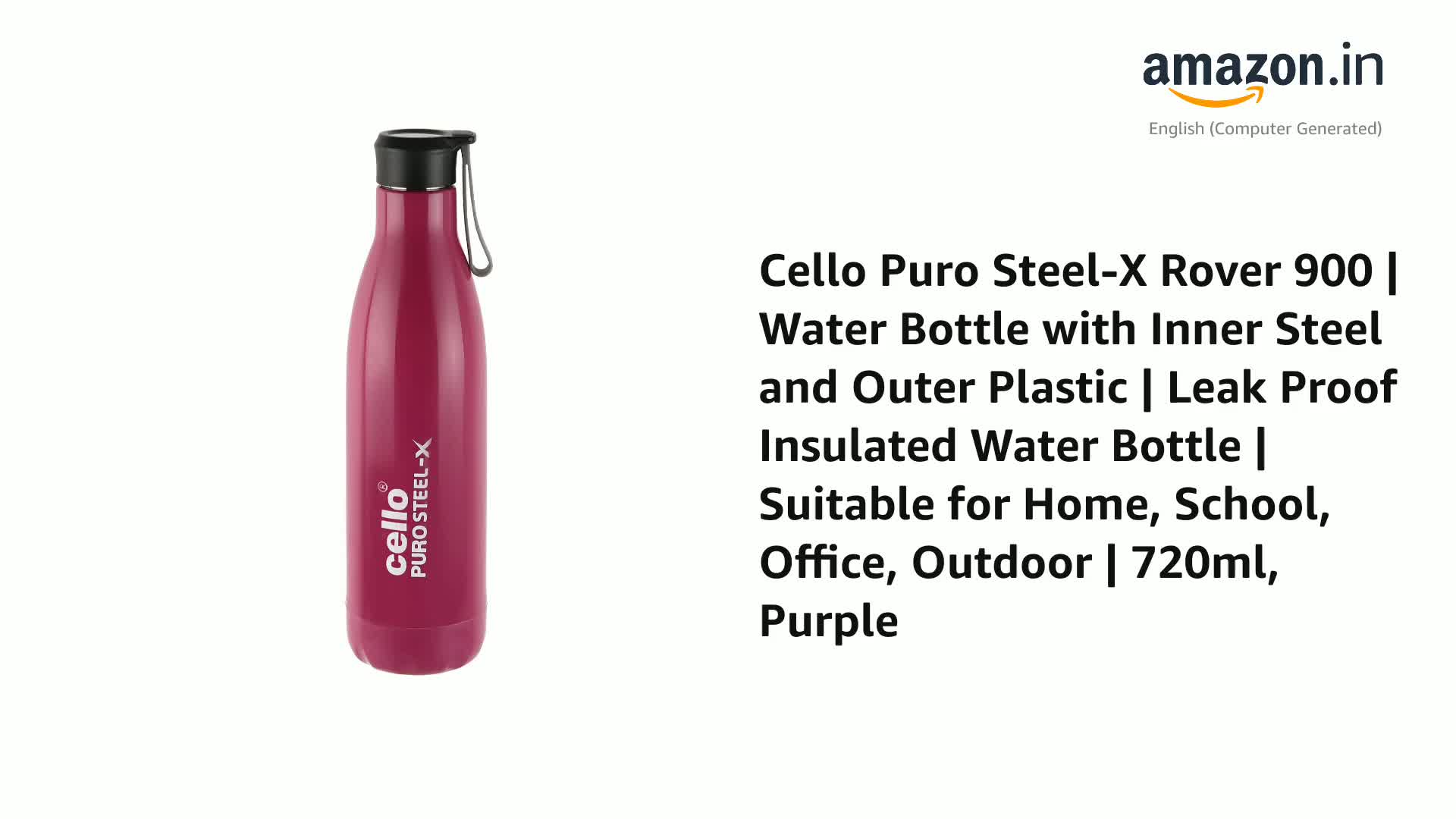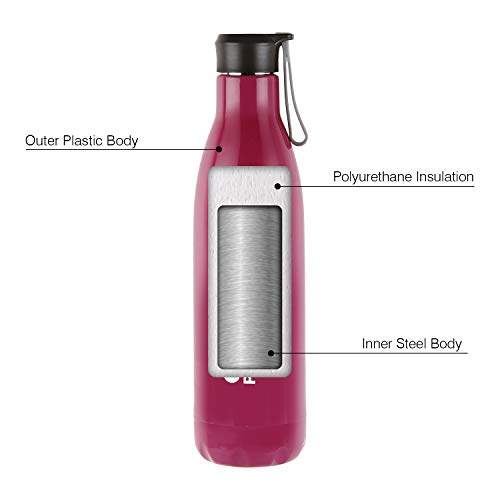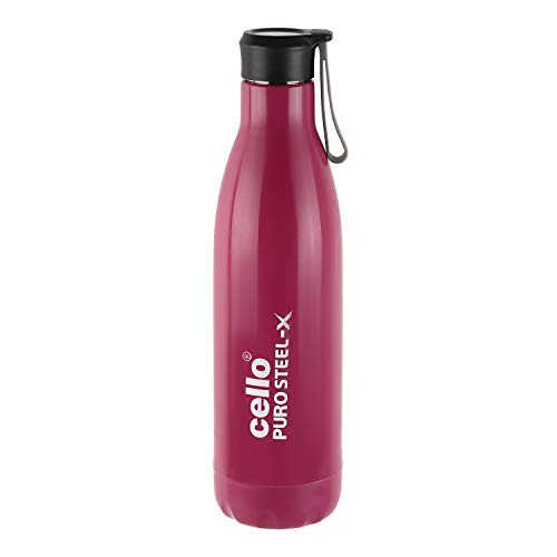 Cello Puro Steel-X Rover 900 | Water Bottle with Inner Steel and Outer Plastic | Leak Proof Insulated Water Bottle | Suitable for Home, School, Office, Outdoor | 720ml, Purple