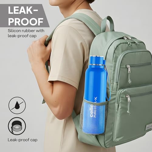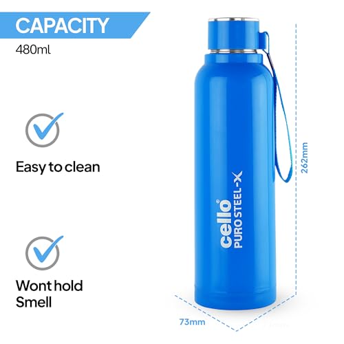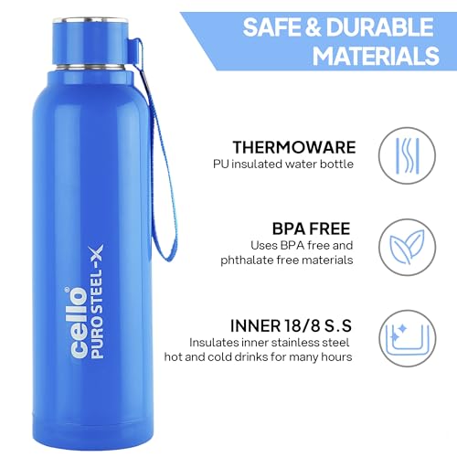 CELLO Puro Steel-X Benz 900 | Leak Proof| Wide Mouth & Easy to Open | Insulated Inner Steel Water Bottle | 730ml | Blue