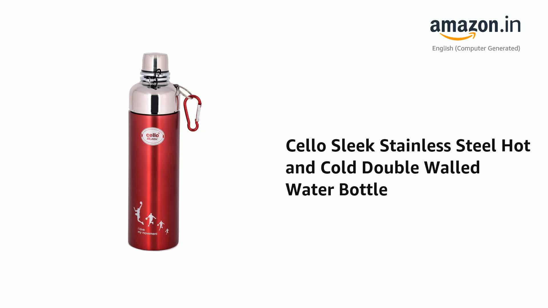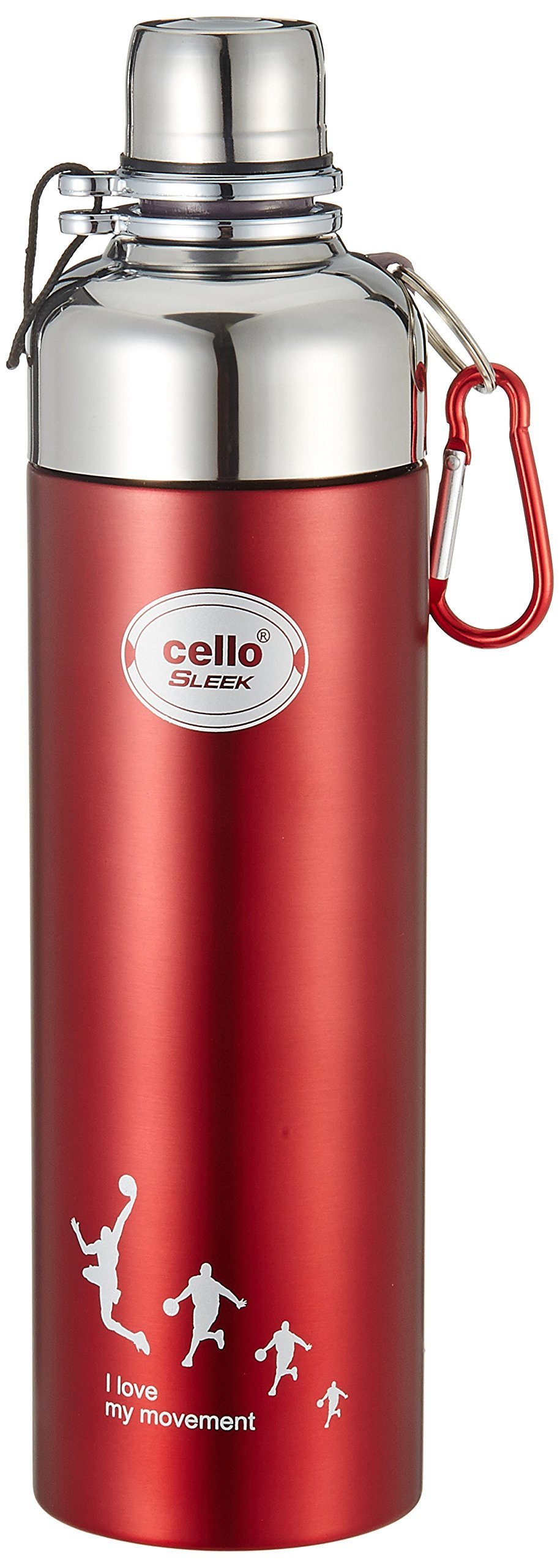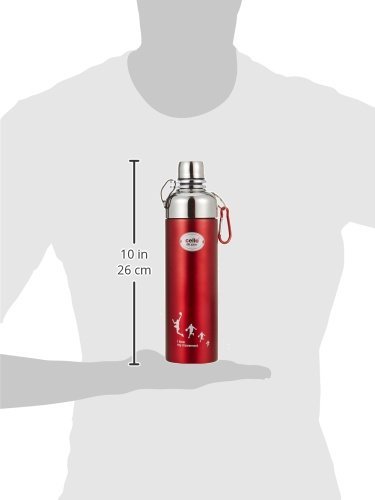 Cello Sleek Stainless Steel Hot and Cold Double Walled Water Bottle (600ml, Red)