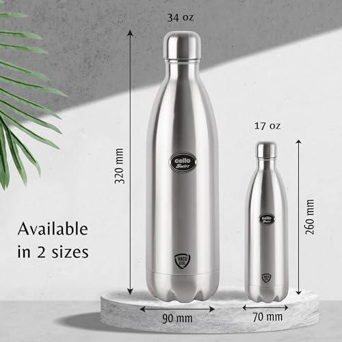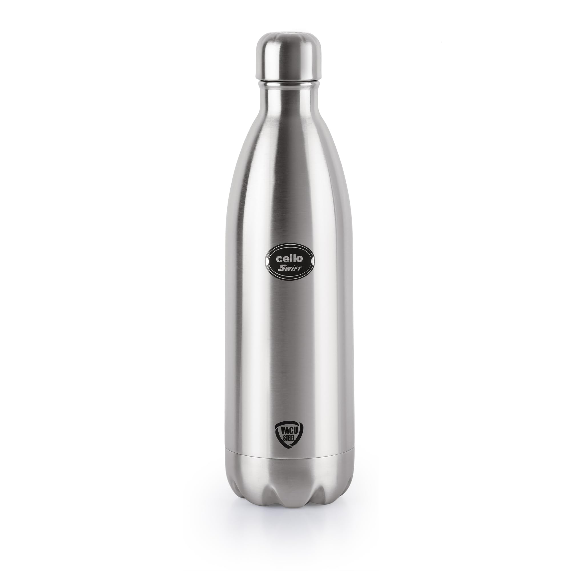 Cello Swift Thermosteel Water Bottle 1000ml, Silver | 24 Hours Hot & Cold | Rust & Leak Proof | Ideal for Office, Gym, Home, Kitchen, Hiking, Trekking, Travel Bottle