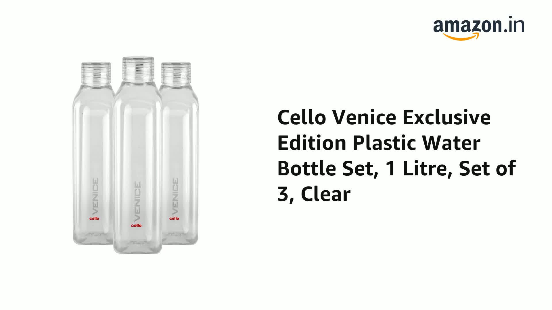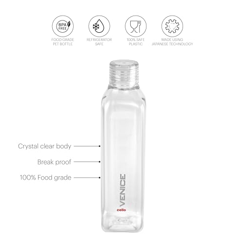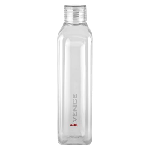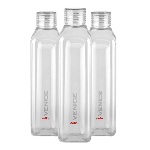 CELLO Venice Exclusive Edition Plastic Water Bottle | Unbreakable and Hygienic | Perfect for staying hydrated at the school,college, work, gym and outdoor adventures | 1 Litre | Set of 3, Clear