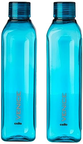 CELLO Venice Plastic Water Bottle | Unbreakable and Hygienic | Perfect for staying hydrated at the school,college, work, gym and outdoor adventures Water Bottle | 1 Litre | Set of 2, Green