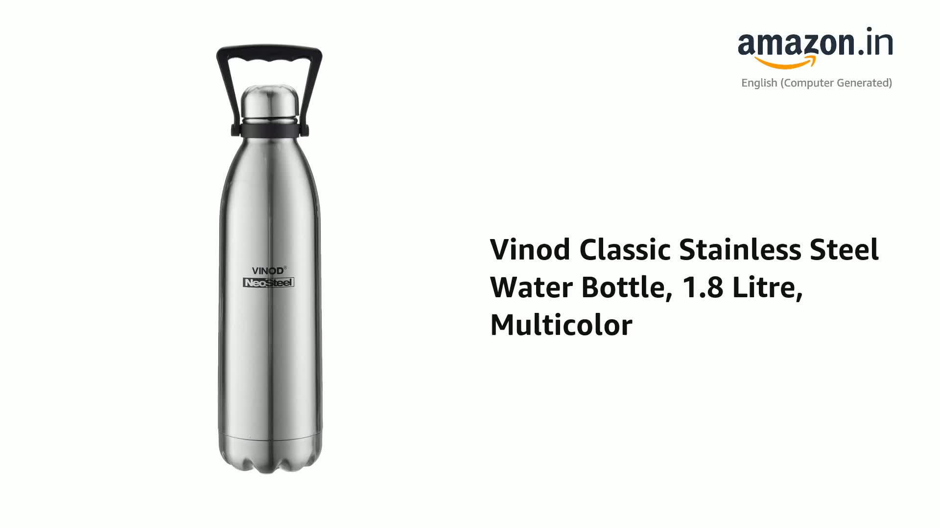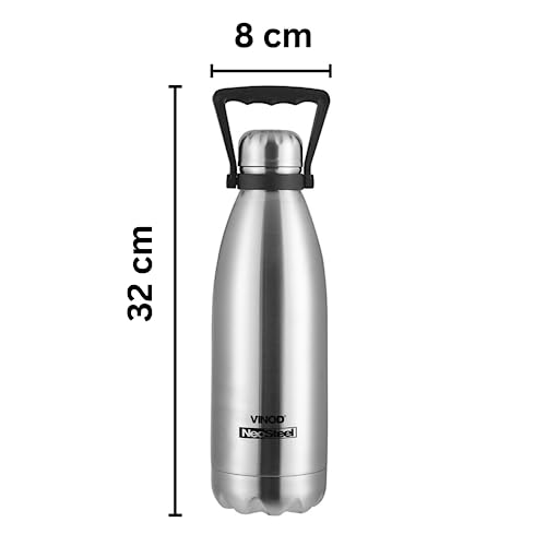 One stainless steel bottle. From vinod intelligent cookware. High quality 18/8 stainless steel. Fabricated 18/8 stainless steel inside copper coating. Spill resistant. Sturdy and highly durable12 months warranty.