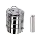 8X4 Tiffin- Material Used:-Stainless Steel Cointainer :4 tier lunch box stainless steel which is Rust proof and hygienic steel tiffin 4 tier food allows you to easily pack a nutritious lunch for you and your family Round tiffin box allows you to easily load up on healthy veggies or mid-day snacks. Dynore brand tiffin can be easily carried to office school on the road camg or hiking Lunch box with Compartments is made in 100% STAINLESS STEEL. Tiffin box is a high quality food grade stainless steel product Since there is no plastic it has the benefit of being BPA free so you don't have to worry about harsh chemicProduct Dimension- Lunch Box- 13x13x17 cm Compartment- 12.5x12.5x4.5 cm 500 ml Bottle- Material type: Stainless Steel; No. of pieces: 1; Capacity: 500 ML; Colour: Silver; Best Usage: Office/School/College/Gym/Picnic/Home This bottle is easy to clean and maintain Use a mild detergent or dish wash liquid and clean on the inside with a bottle brush Product Dimension-6.5x6.5x14 cm