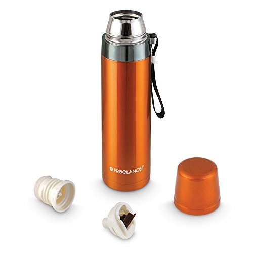 Freelance Elise Vacuum Insulated Stainless Steel Flask Water Beverage Travel Bottle 750 ml Orange (1 Year Warranty)
