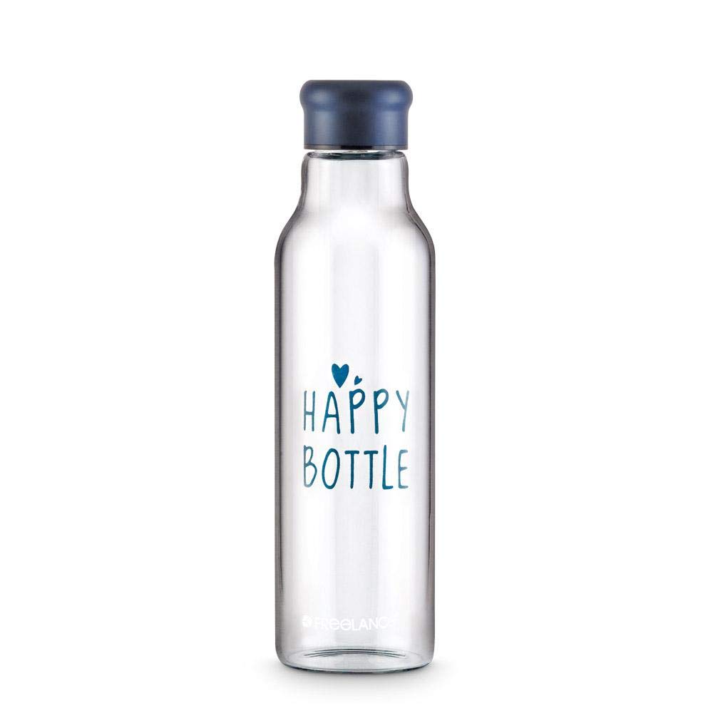 Freelance Happy Glass Bottle, Water Beverage Juice Milk Fridge Bottle, 900 ml, Blue