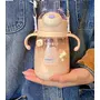 FunBlast Water Bottle Anti-Leak Kids Cartoon School Water Bottle 450 ML BPA Free Water Bottle Cute Animal Design Water Bottle with Straw Strap and Side Handle (Beige Polycarbonate Pack of 1)