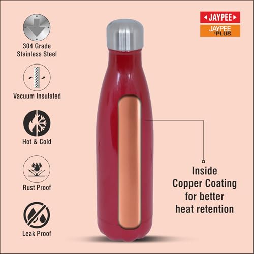 Jaypee Plus brings Insulated vaccum steel bottles as a part of the thermosteel range. It Keeps drinks/beverages cold and hot for hours. Material- Stainless steel SS 304 inside & outside. 100% Rust Free steel and leak proof. Comes with inside copper coating for better heat retention. It will keep your drinks just the way you need them. leak-resist screw-top cap.