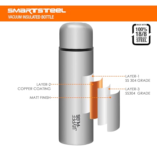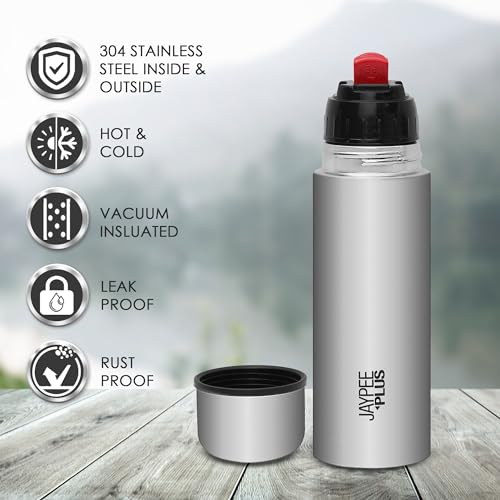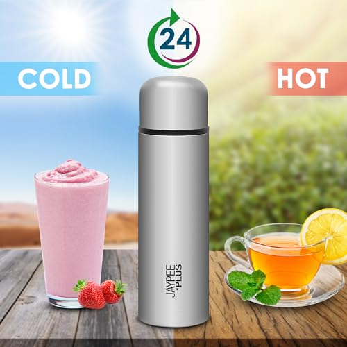 Jaypee Plus thermosteel bottle come with a unique flip lid that makes pouring completely hassle-free and spill-free for you. The lid of this flask doubles up as a cup for drinking. It is vaccum insulated with inner and outer steel and is designed to keep your beverages hot or cold for hours. When it comes to drinking fresh and clean water during travelling it is best way to carry water from home to avoid any contamination. This bottle is made of stainless steel and it is durable. It not only keeps the water clean but also retains temperature for up to hours. So it is not only ideal for carrying water but also for hot and cold beverages. Hence carry your favourite hot beverage for a day's journey during winter and simple cold water or juice during summer to refresh yourself while travelling. A unique flip lid that makes pouring easy. Ideal for gifting.