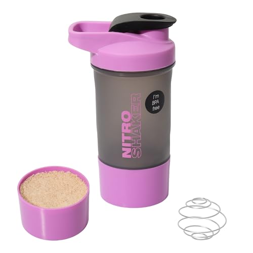 Nitro Shaker delivers smooth shakes each and every time without lumps. The design of the bottle makes it very convenient to use while working out. The shaker has a blending steel ball whisk which whips around in the bottle effectively. It is all-in-one solution for your active lifestyle.